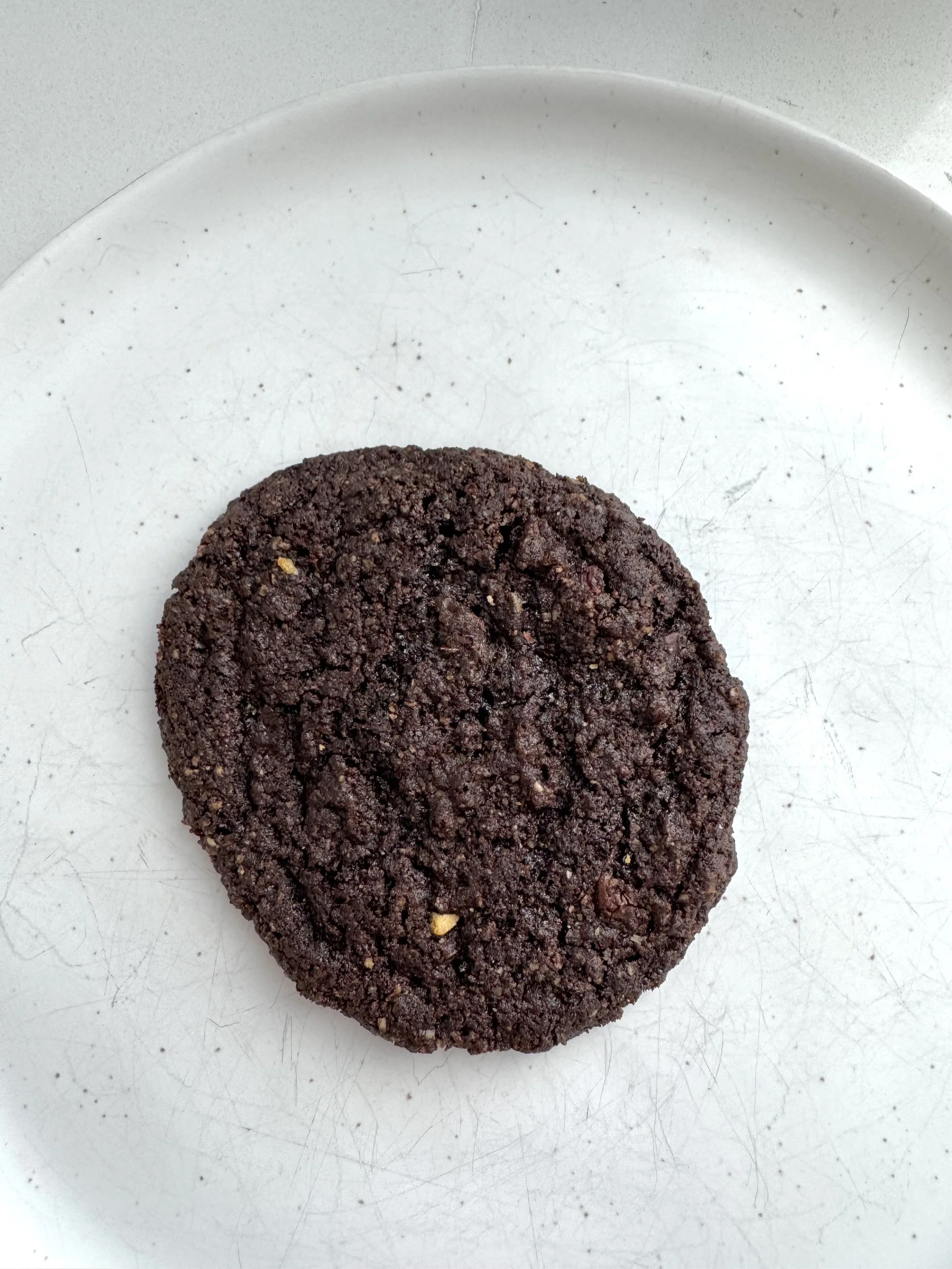 JJ Bean dup vegan double chocolate chip cookie with less sugar and it’s also gluten-free!